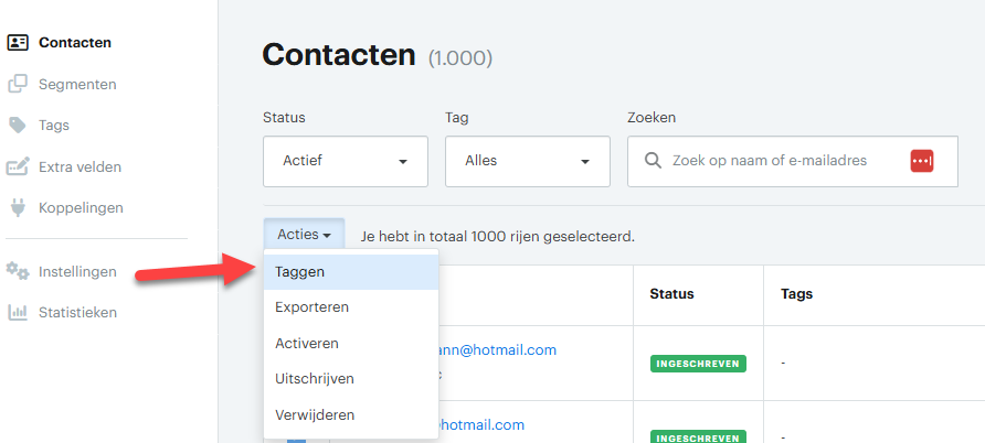 Tags toevoegen aan al je contacten uit een mailinglijst doe je als volgt: