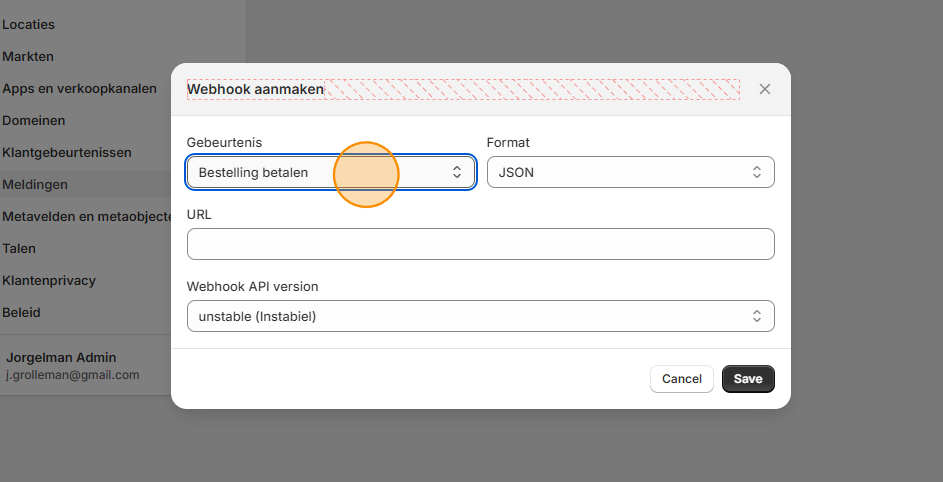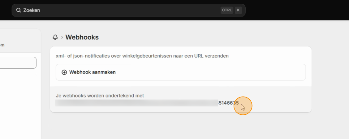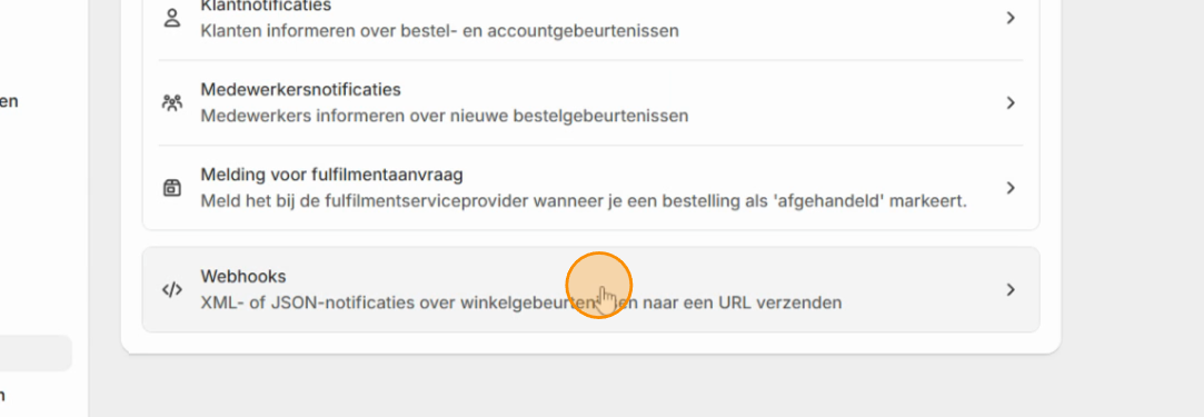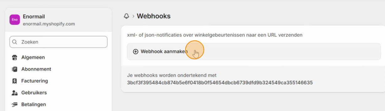 Stap 13: Ga terug naar Shopify en navigeer opnieuw naar het scherm voor webhooks.