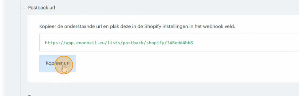 Stap 17: Plak de eerder gekopieerde postback URL van Enormail in het invulveld URL.
